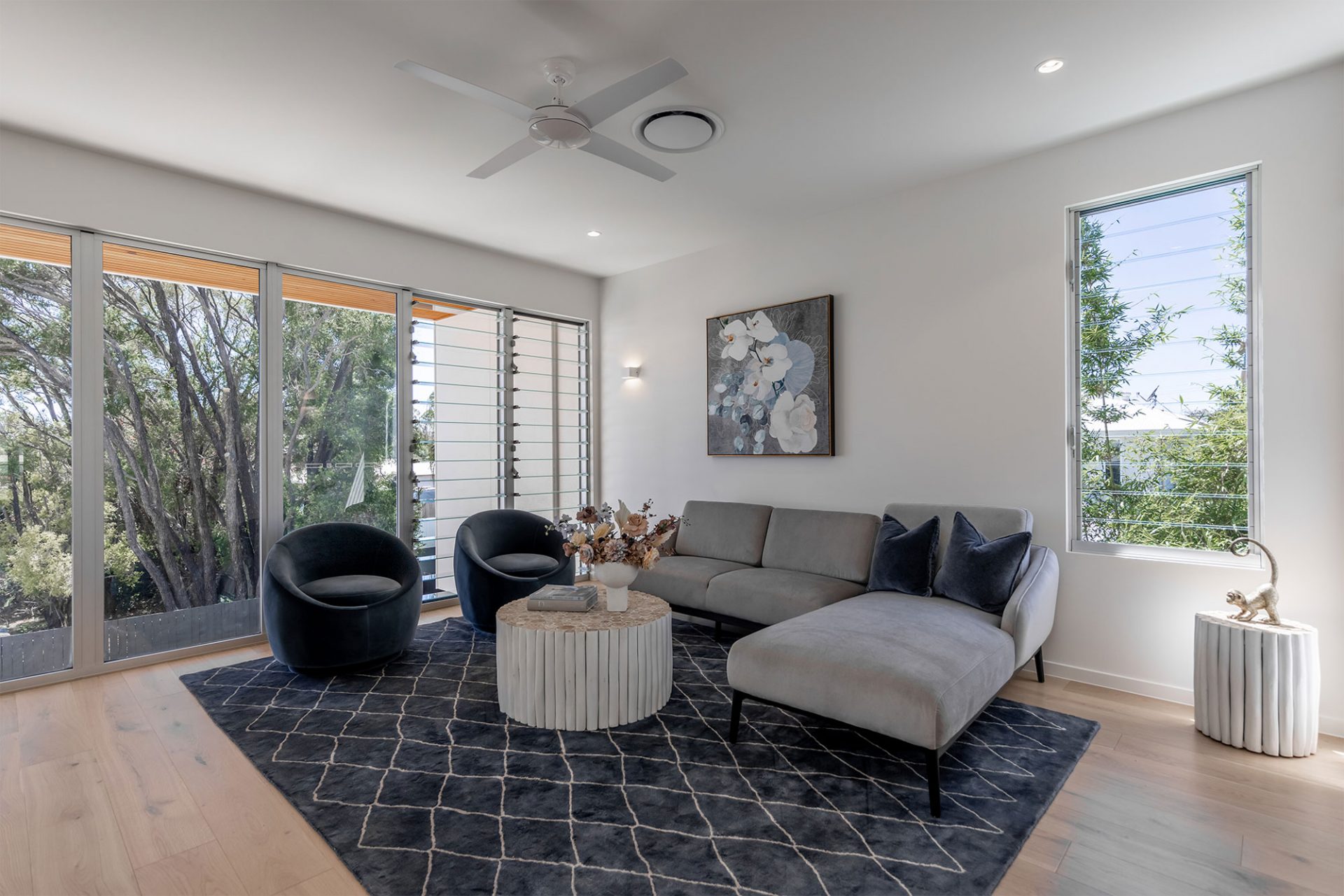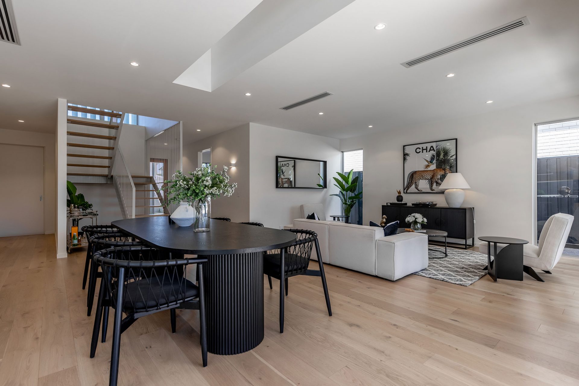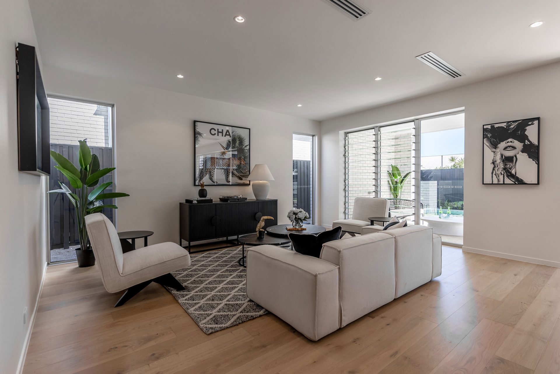 A fitting homage to Palm Springs architecture, OFF-WHITE 012 is Brisbane’s swankiest new residence. Situated at 12 Bulli Street, Hendra, Queensland, this five bedroom, four bathroom and two car park homes expertly fuses together concrete, glass and stone. Occupying two storeys, beautiful free-flowing design is accompanied by white oak timber flooring, dual living areas, rooftop courtyard access and a stylish kitchen. Outside can be found a spacious entertainment area, manicured gardens and a Mediterranean-inspired plunge pool. An elegant display of refined living, OFF-WHITE 012 revels in its take on classic modernism.
